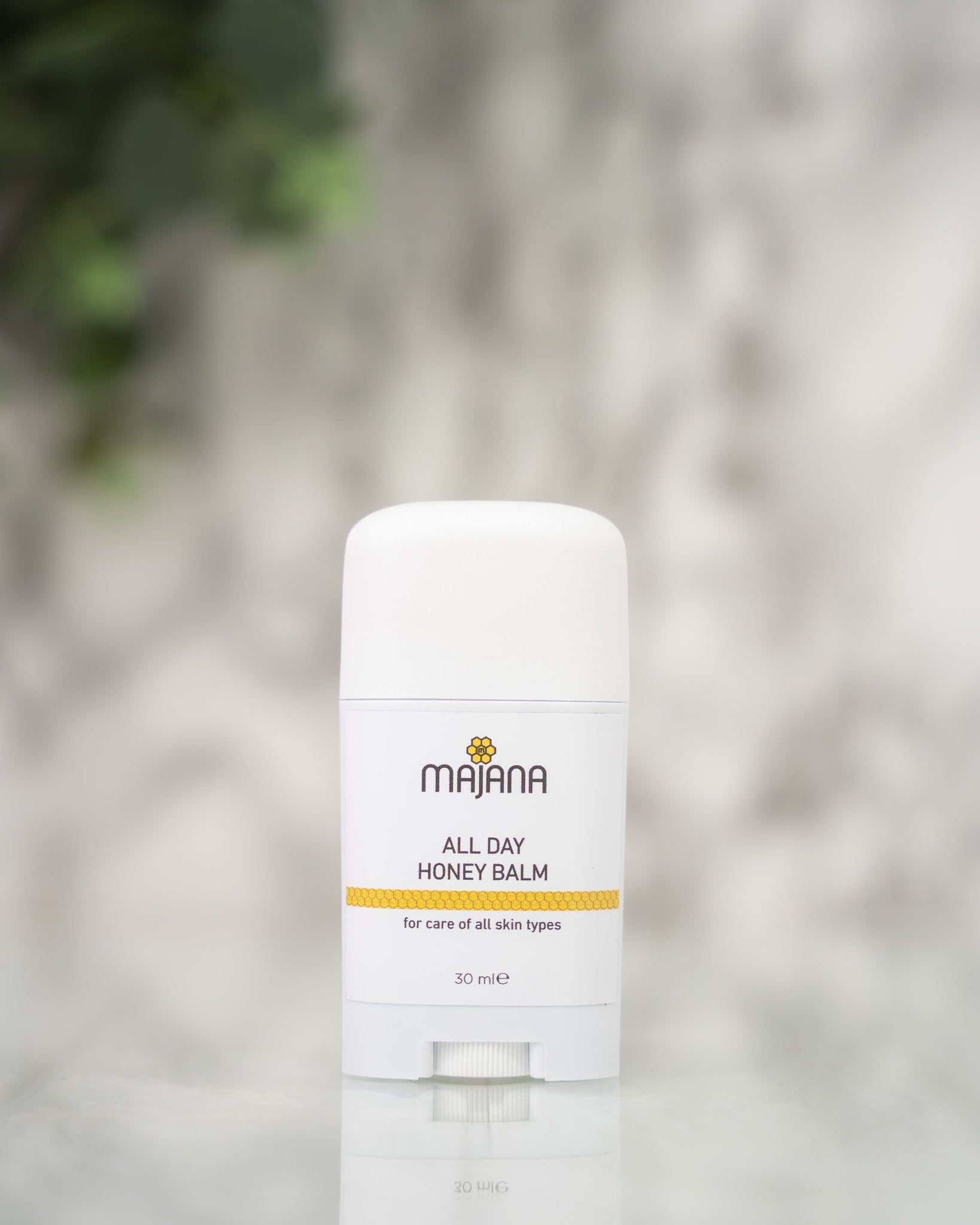 All Day Honey Balm är en uppmjukande universalsalva som skyddar huden från att torka ut. Enkel att applicera och smidig att bära med sig.